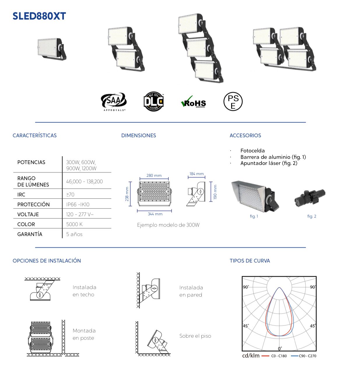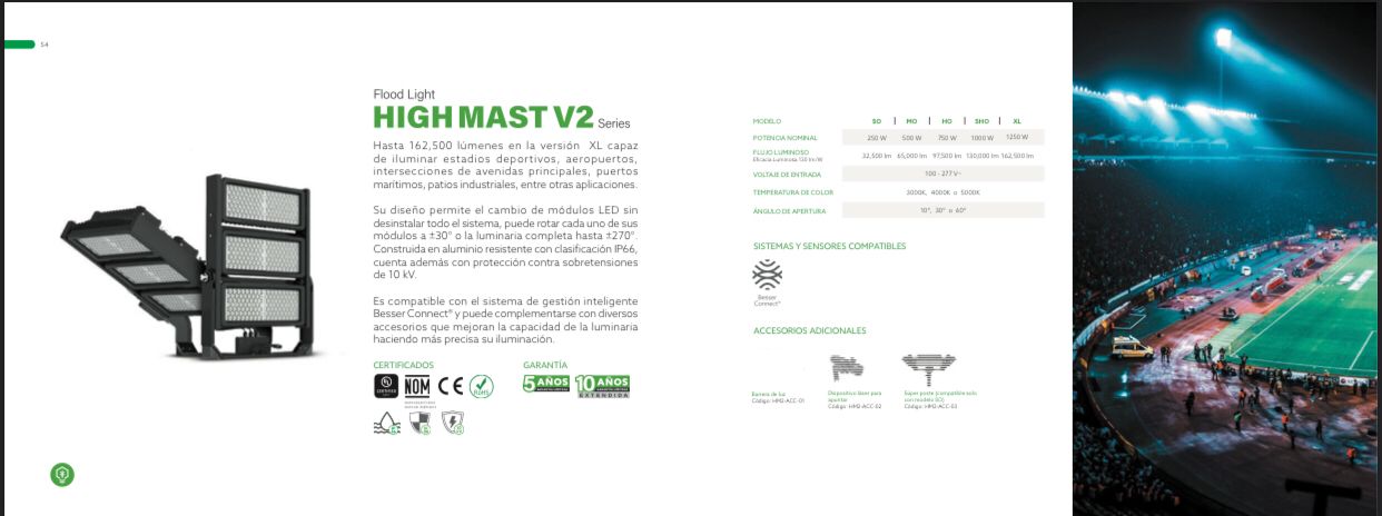 Útiles también para edificios industriales, estadios, grandes áreas en el exterior, anuncios publicitarios, fachadas, andenes de carga y aeropuertos.